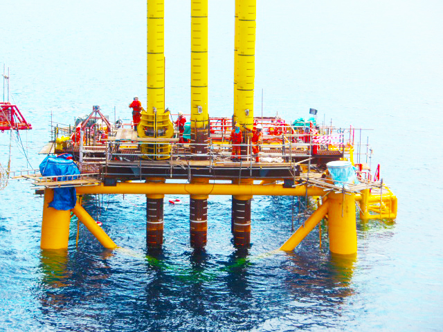 After fabrication and on-shore precommissioning was complete, the deck, jacket and piles were transported via the Panama Canal on an ocean-bound, offshore barge in Malaysia where they were installed in water depths of 166 ft., along with approximately 13 km 10″ pipeline.